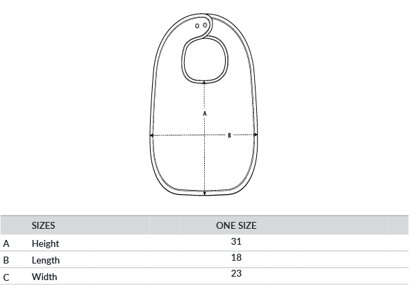 Baby bib. Double-layer interlock. Self-fabric rouleau binding at neck and outside edge. Double snap-closure size adjustment at back neck. Certified GOTS, Vegan, Fairwear, OEKO-TEX® Organic